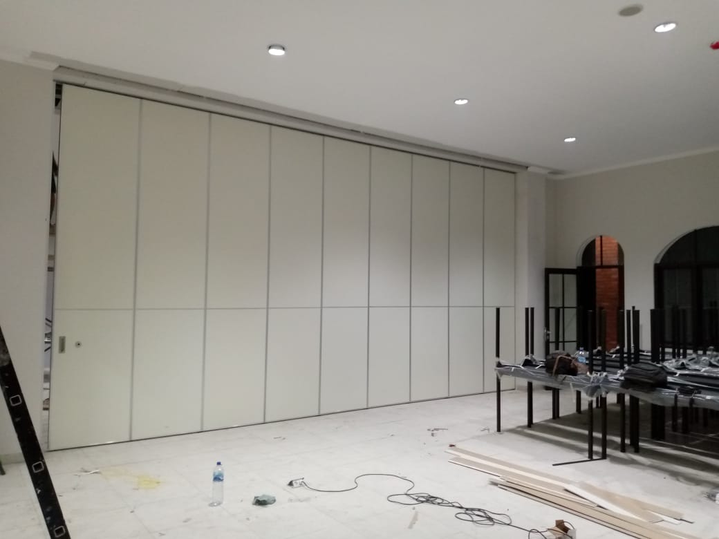 Pengoperasian partisi ini cukup mudah. Jika ada acara, dan memerlukan ruangan yang lebih. Partisi ini dapat membuka dengan melipat ke samping.